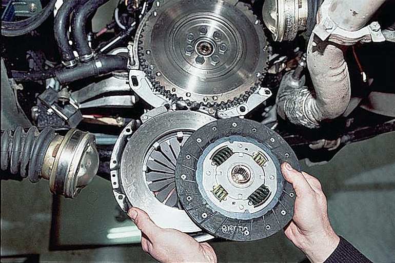 Если фрикционные Pin-Up на ведомом диске пригорели, диск нужно менять. Операция по замене сцепления включает следующие действия: